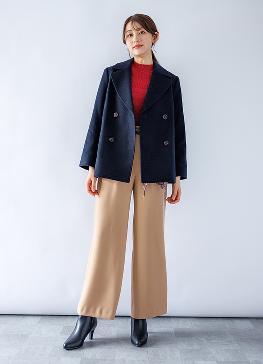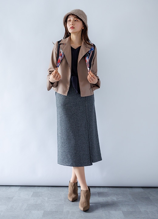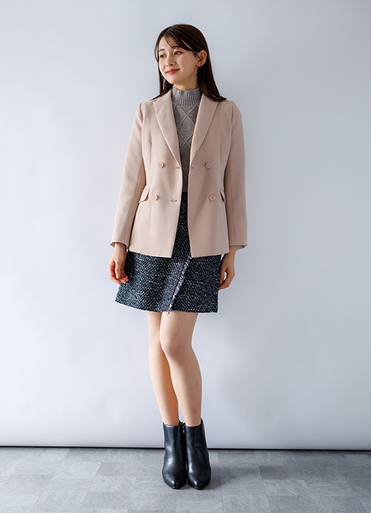 シャープに決まるダブルジャケットの女子アナ風コーデ -