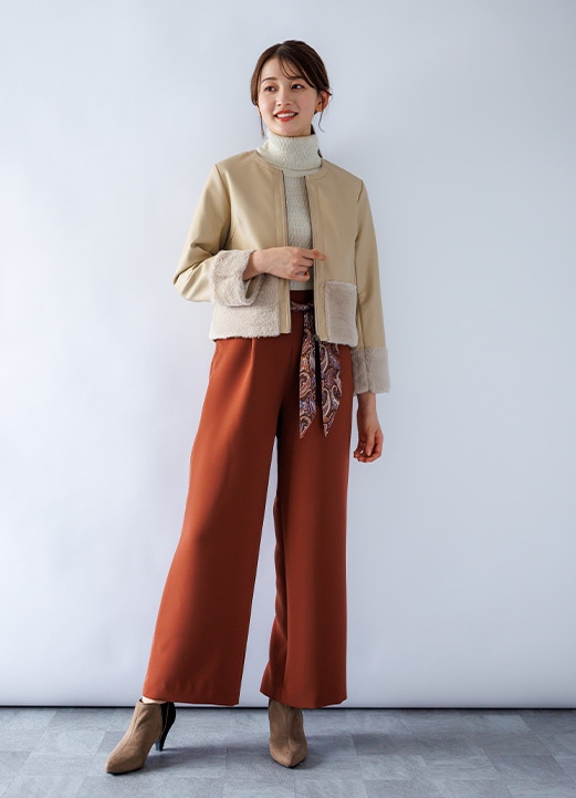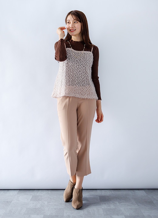 甘さをプラスの女子アナ風パンツコーデ -