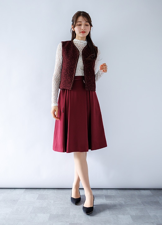 女性らしく清楚に決まるワインカラー女子アナコーデ -