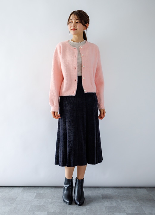 甘さあるツイードスカートの女子アナ風コーデ -
