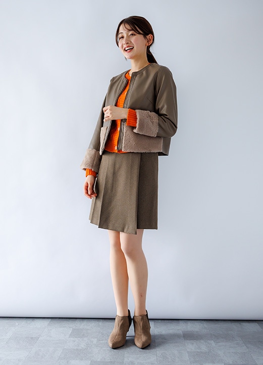 ツイード×ふわもこの華やぎ女子アナ風コーデ -