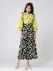 スカートのような女性らしさのあるラインとプリント地でフェミニンにまとまるガウチョパンツ。