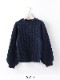 前面が縦の大きめなケーブル編みなので優しい印象と共にタテラインが協調されて、ローゲージ編みでもすっきり見せ効果も!
