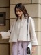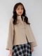 ふんわりしたブークレー生地が今年らしいAラインの可愛いショートコート。 ベル型になった袖や裾が可愛いらしいバランスを作ってくれます。 大人めなスタンドカラーを使ってオンオフ着回しもしやすいデザインに。 ウエスト周りがスッキリとしたフレアスカートやパンツにも好バランス。 ゆったりした着心地なので中に着こむことも可能。