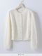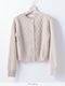 7GGのケ-ブル編みの丸首カーディガンですが、カールパークレーンで毎年一番売れるプルオーバーの編地をカーディガンにしました。