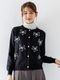 綿/12ゲージ(通常一般的な編地です)のパールをいっぱい散りばめた華やかカーディガンです。
